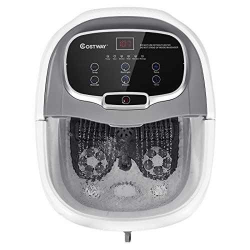COSTWAY Foot Spa/Bath Massager, with Motorized Rollers, Shiatsu Massage, Shower, Heat, Red Light, Temperature Control, Timer, LED Display, Drainage Pipe for Foot Stress Relief (Grey)