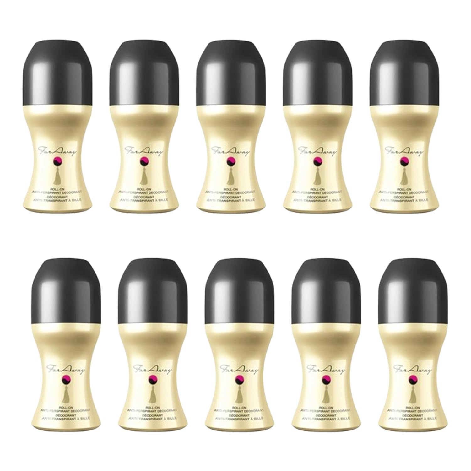 Far Away Women's Antiperspirant Roll-On Deodorant 50 ml, Floral and oriental scent, Notes of sandalwood, jasmine and freesia (Pack Of 10)