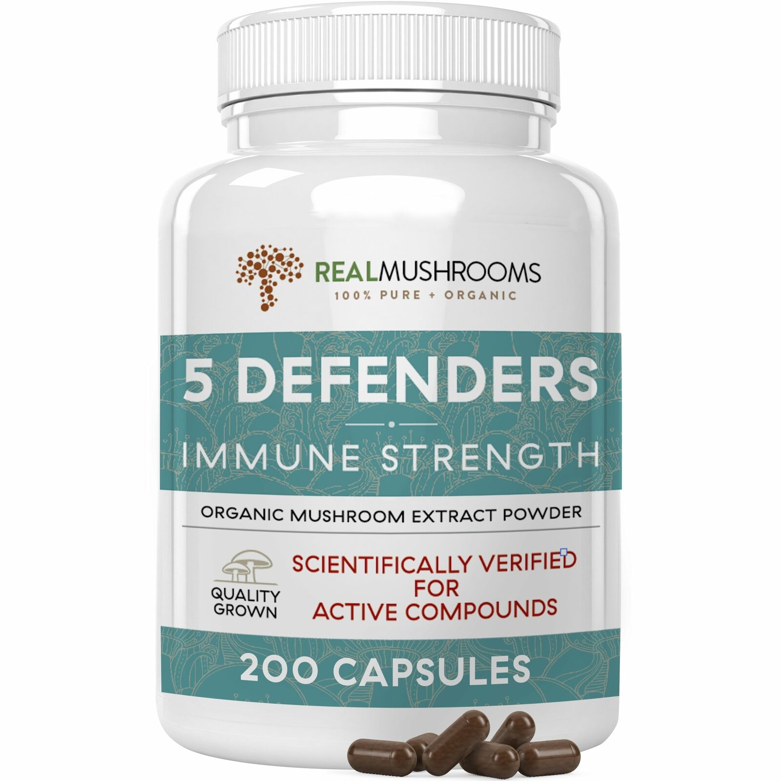 Real Mushrooms Organic 5 Defenders Mushroom Blend Immune Strength 200 caps NEW